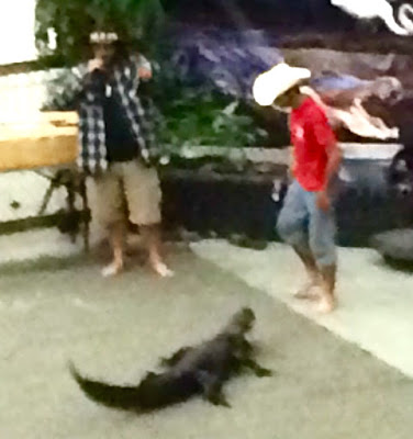 So I sat through the gator show and I felt bad for the gator. They goaded it to make it open its mouth and jump and move around. If you were a gator, would you like to be kept in a coffin size box then yanked out into bright lights and poked? Of course not. On the other hand, they claim that the gator had been taken from someones home and that because it was 4 feet long or longer, it generally would have been euthanized. My immediate thought was, if I were the gator, I might have chosen euthanasia over that life. The handlers then stated that they "show" a gator for a couple of weeks, then the gator is sent to a preserve to live out the rest of their natural lives. That sounds better. I guess a few weeks of torment verses being killed might be a fair deal for the gator. And I hope that maybe all the kids in the audience will learn to respect these animals and if they ever get a chance to see one in person and then know better than to try to feed it or get too close. So overall I decided it's not too much torture as long as what they said about it being released into a nature preserve is true.